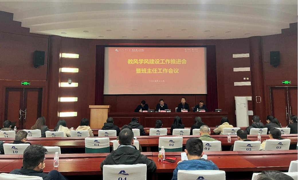 12月10日下午,商学院(法学院)在校召开教风学风建设推进会,全体教职工和学生代表参加会议。