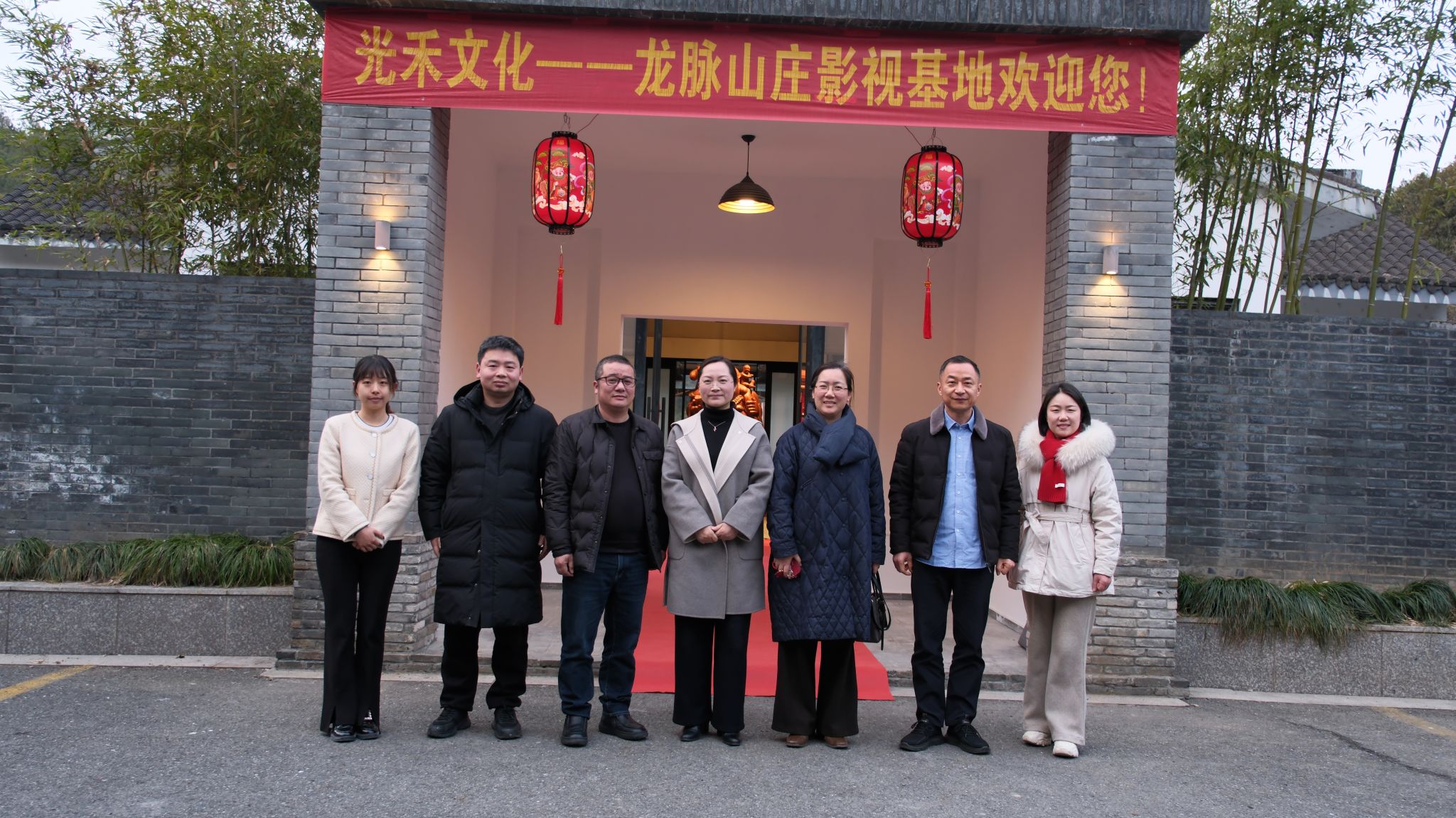 绍兴光禾文化传媒有限公司是绍兴地区颇具影响力的新媒体内容制作与传播机构,在光禾传媒创始人何淼陪同下,学院一行首先参观了位于绍兴近郊的龙脉山庄影视基地。该基地依托江南山水自然景观,建有多个专业化拍摄场景和配套设施,参观过程中,何淼详细介绍了基地的运营模式、内容创作流程及承接的微短剧项目。在随后的交流座谈会上,光禾传媒创始人何淼详细介绍了企业发展情况、人才需求特点以及行业发展趋势。