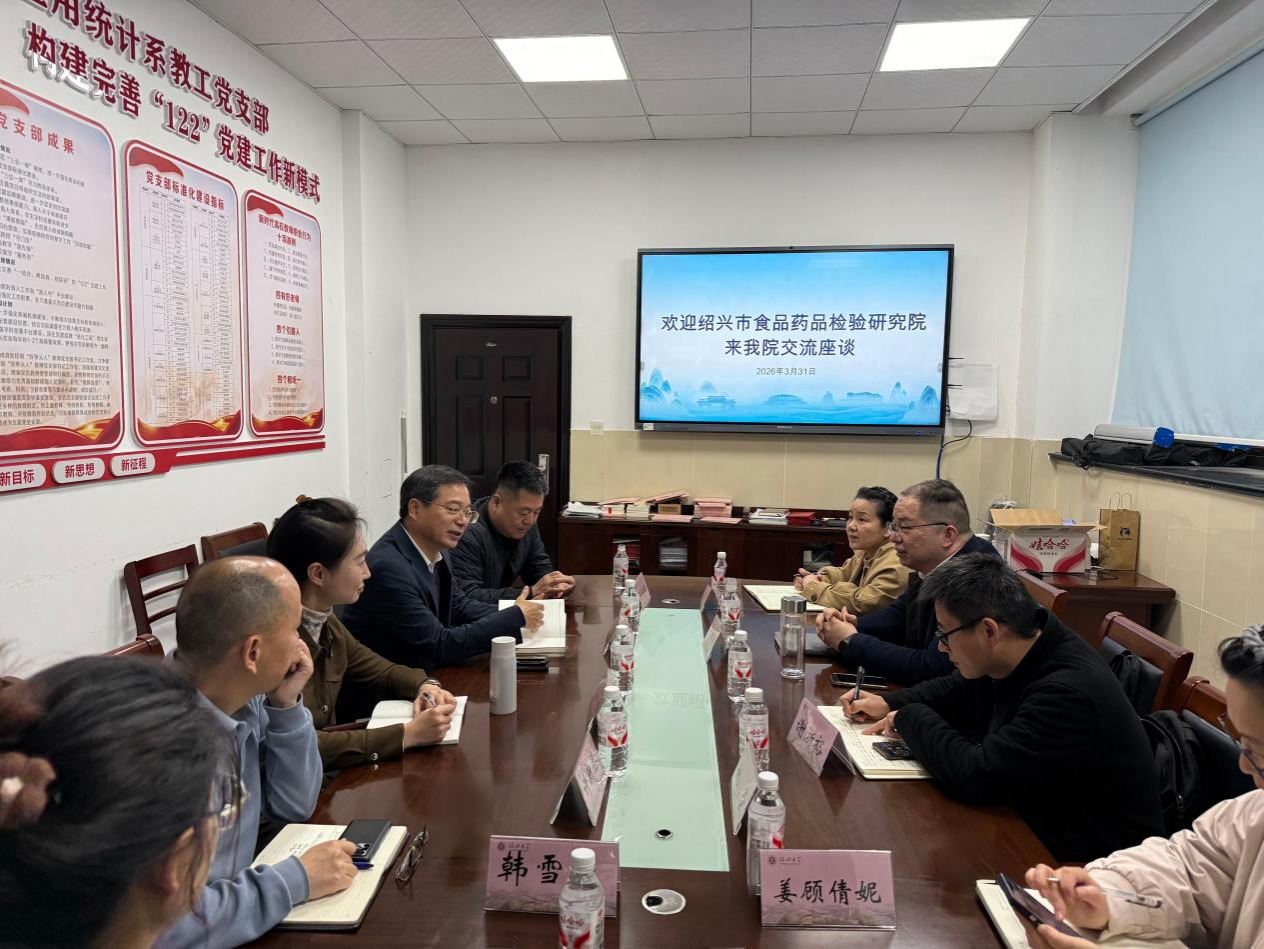 3月31日下午,绍兴市食品药品检验研究院院长胡银洲一行来我校生命与环境科学学院开展座谈交流。生命与环境科学学院院长胡保卫、副院长章晓栋、党委副书记徐笑及相关教师参加座谈会。