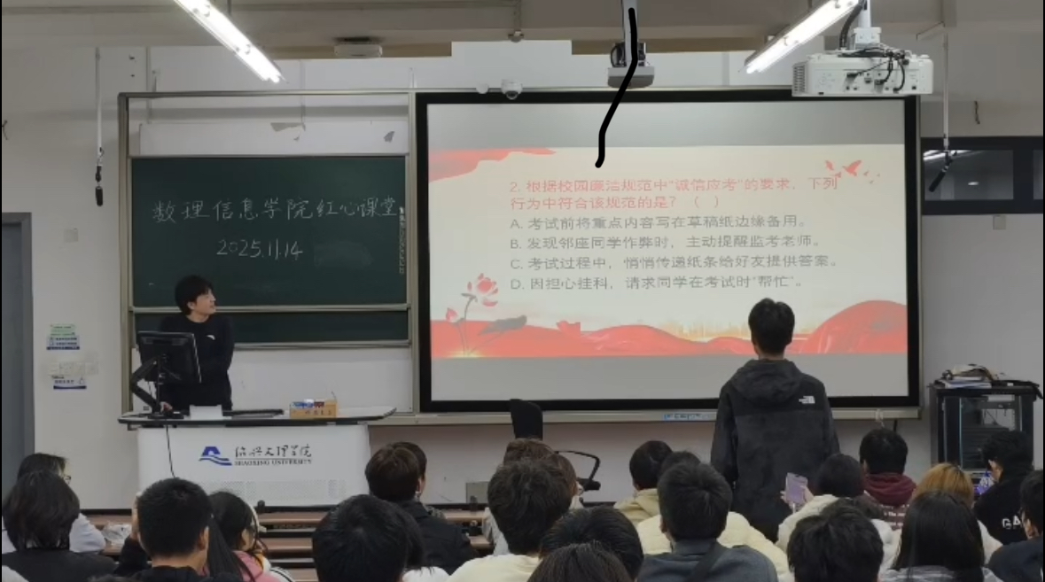 11月14日晚,数理信息学院在南山校区举办第一期“红心课堂”活动,学院入党积极分子代表与党员代表共同参与学习。