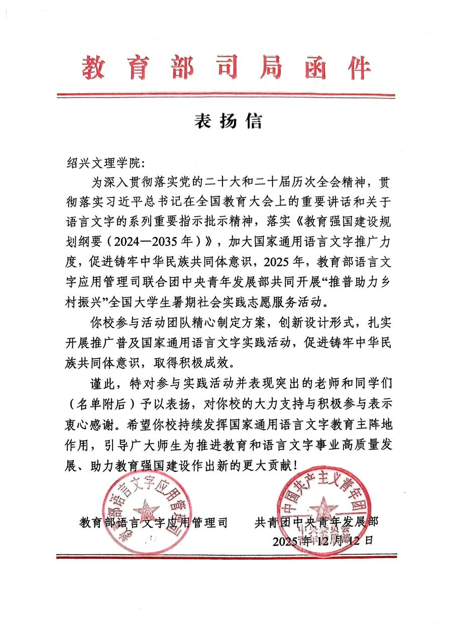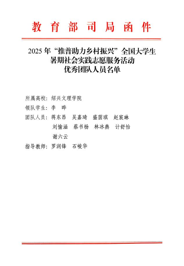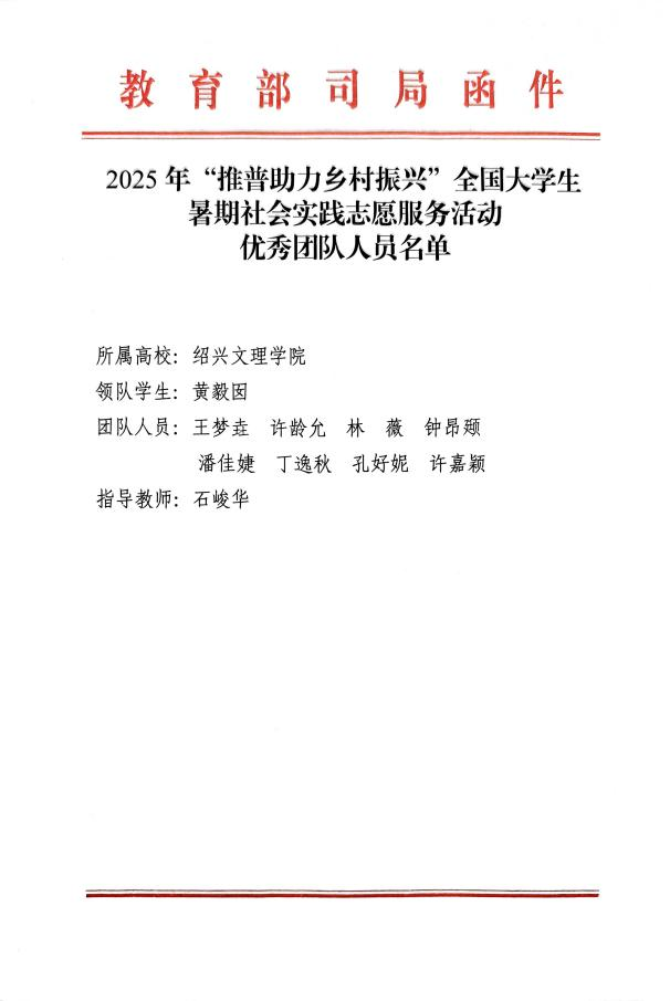 在2025年由教育部语言文字应用管理司、共青团中央青年发展部共同主办的“推普助力乡村振兴”全国大学生暑期社会实践志愿服务活动中,教育与心理学院“山海同声”与“山花守望”两支社会实践团队,从全国1680所高校的8013支队伍中脱颖而出,获教育部、团中央联合致信表扬。本年度活动竞争激烈,共8万余名师生参与,经多轮评审,最终仅评选出200支“优秀团队”。两支队伍同时入选,充分体现了教育与心理学院实践育人的扎实成效与青年学子服务国家的担当精神。