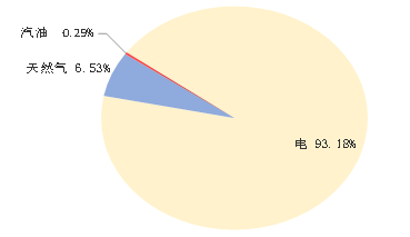 2022年第三季度能源消耗中主要能源指标消耗情况如下:电消耗量为4720557kWh(580156.46tce),占能源消耗总量的93.18%;天然气消耗量为33464m³(40635.34tce),占能源消耗总量的6.53%;汽油消耗量为1221.68㎏(1797.58tce),占能源消耗总量的0.29%(具体占比见下表)。